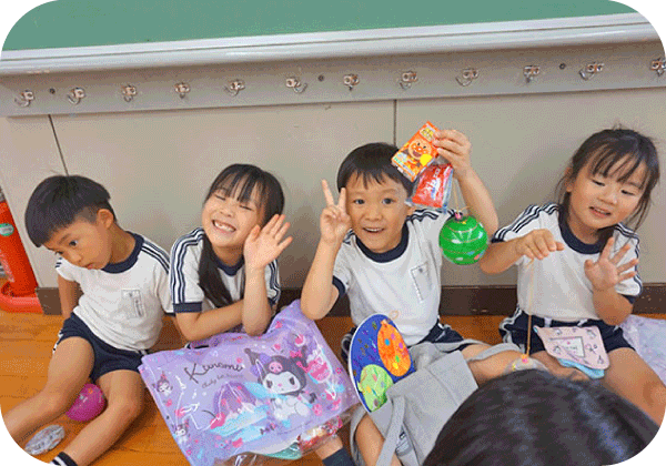 幼稚園のホールや園庭で体を動かしたり、工作などをしたりして親子で楽しいひとときを過ごします。